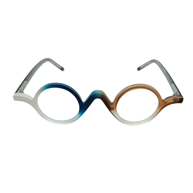 Оправа из пластика для зрения необычной расцветки и формы с круглыми окулярами.